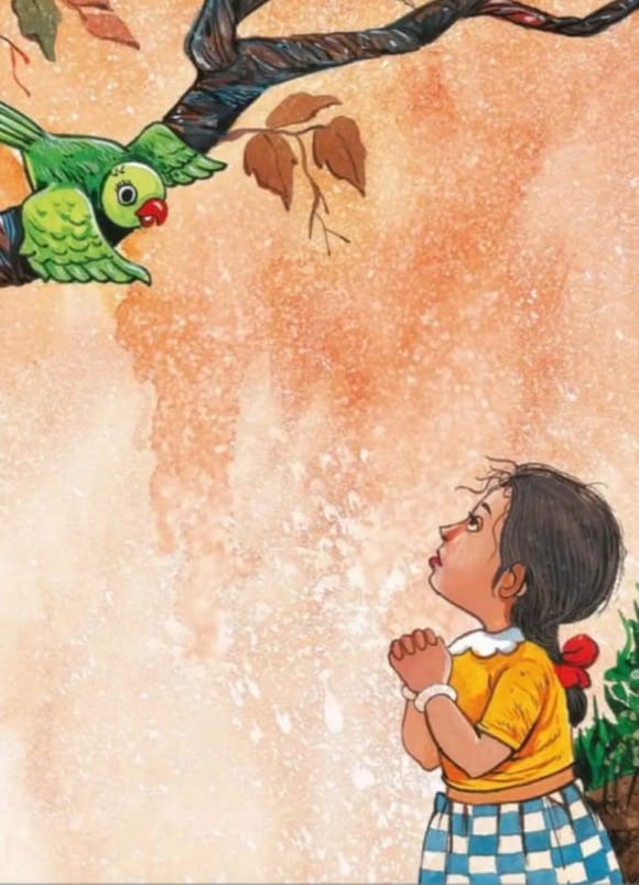 एक दिन रात में झमाझम मूसलाधार बारिश हुई। अगले दिन सुबह नीला आसमान सफेद बादलों से हल्का-हल्का ढका हुआ था। दिन निकल आया था। दोनों भाई सुबह अपने दोस्तों के साथ बेफिक्र होकर खेलने निकल गए। स्कूल का समय होने पर मीना उन्हें ढूंढते हुए अपने साइकिल से बगीचे में पहुंची। पेड़ के नीचे काफी पानी जमा हो चुका था, जिसमें सभी बच्चे आनंद के साथ खेल रहे थे ।कुछ बच्चे मछलियां पकड़ रहे थे। कुछ बच्चे पानी में छपक छपक कूद रहे थे। एक बच्ची किनारे पेंटिंग कर रही थी। सभी अपने आप में मग्न थे।